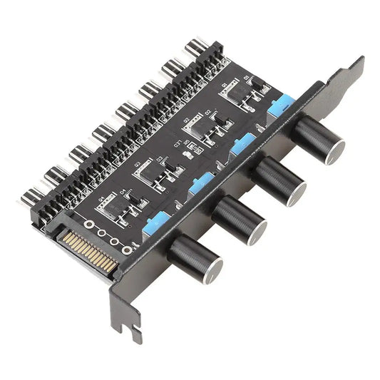 • 12V Computer Case Fan Hub Regulator 8 Way 4 Knob Sata/4Pin Fan Speed Controller Fan Control Cooling Fan Hub for Computer PC Case