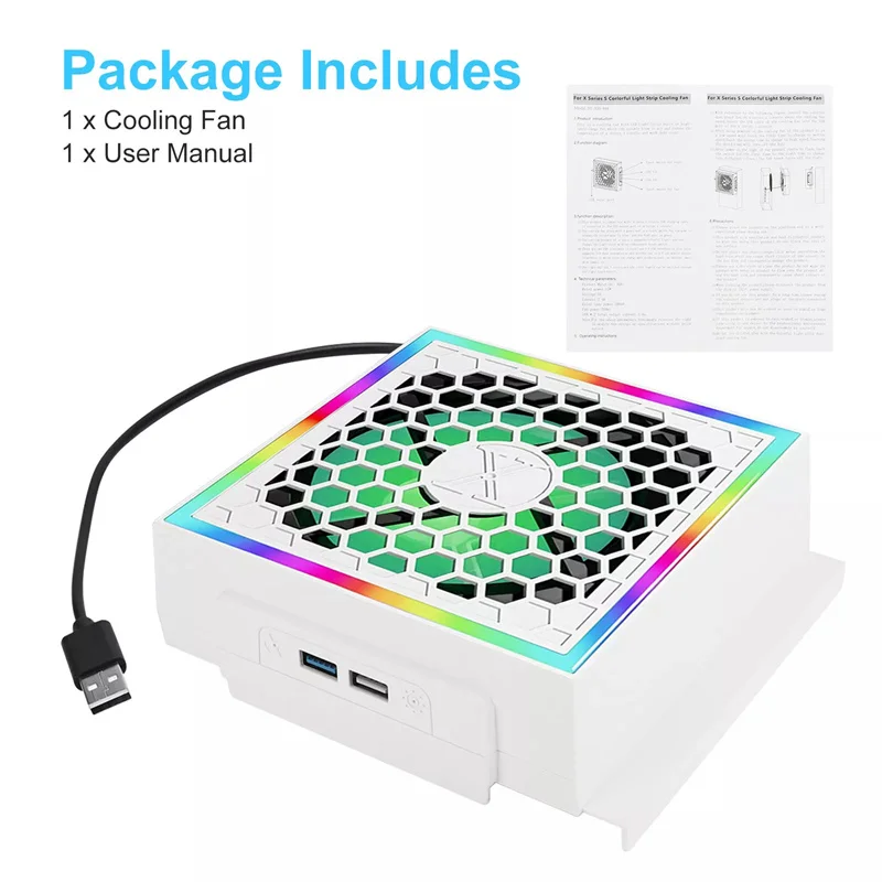 Designed for Xbox Series S: Cooling fan with cool RGB atmosphere light specially designed for Xbox series S. The upgraded cooling fan for Xbox series S has a built-in efficient cooling system that cools your console quickly and prolongs its lifespan.