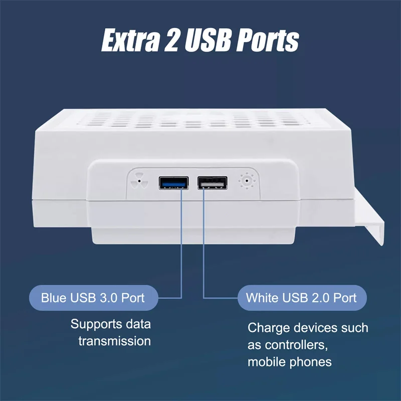 Low Noise & Light Weight: The Xbox Series S cooling fan is low noise and light-weight, it's powered by your Xbox console, it's super portable and won't take up too much space. Additional 2 USB ports for charging other devices, such as handles, mobile phones, small desk lamps, etc.
